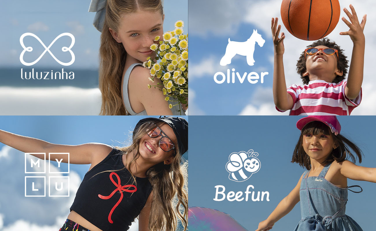 Diversificamos nosso portfólio, introduzindo a moda para meninos com a Oliver, seguida da criação da Mylu, a marca para meninas cheias de atitude. Hoje, quase 30 anos depois, somos reconhecidos como um dos grupos de moda infantil mais importantes do Brasil.